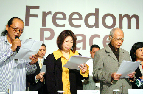 Led by representatives from cultural and academic groups, including noted musician Guo Jhih-yuan (郭芝苑), Cloud Gate Dance Theater founder and artistic director Lin Hwai-min (林懷民) and film directors Tsai Ming-liang (蔡明亮) and Hou Hsiao-hsien (侯孝賢), the "For Freedom and Peace, Taiwan Rejects China's Anti-Secession Law" press conference denounced China for depriving the Taiwanese people of the right to self-determination.