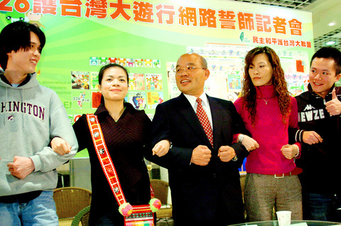 Promoting the March 26 rally which seeks to draw at least 500,000 people to protest against China's "Anti-Secession" Law, Democratic Progressive Party (DPP) Chairman Su Tseng-chang (蘇貞昌) yesterday encouraged young people to use the Internet to help distribute rally information, and urged housewives and workers to participate in the event held next Saturday.