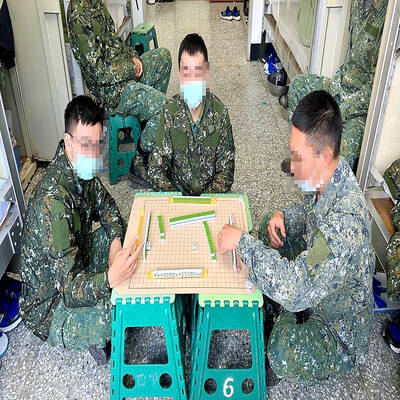 The Military Police Command yesterday said that it had referred a recently discharged conscript to prosecutors after he posted photographs of on-base poker and mahjong games on Instagram. An individual, suspected to have been serving their mandatory service at the Military Police Training Center, had posted photos of people playing mahjong and poker, and taking selfies while at the base, a source told the Chinese-language Liberty Times (the Taipei Times’ sister paper). The former conscript said in the post that they had begun their service in the middle of September last year, and described the experience as “the winter camp which I