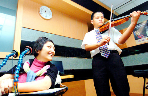 Chuan Fu-hua (莊馥華), 21, has suffered from visual impairment, paraplegia and communication disorder since she got hurt in a fire at the age of 10.