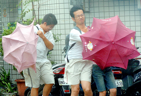 Torrential rains also whipped through Taipei on Sunday and yesterday. Powerful winds uprooted trees, dislodged billboards and blew over scooters all over the nation's northeast. The storm's full impact was hit Taipei early yesterday evening when its eye was just south of the city.