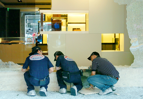 Police said a Gucci shop on Zhongshan N Rd was broken into, and 86 pieces of designer merchandise were stolen. The losses amounted to over NT$1 million. Police said suspects broke glass windows at about 5am yesterday morning and entered the shop. The thieves may have used the noise from strong winds and rain conceal their crime, they added.
