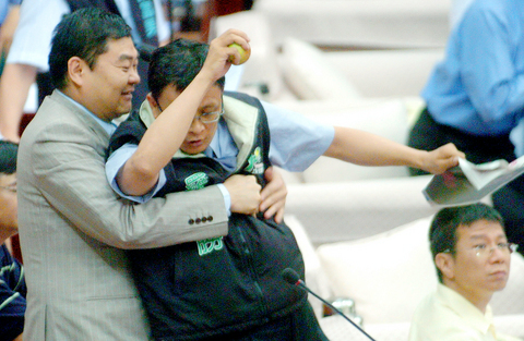 Upset by the pan-green camp's obstructions, KMT Councilor Yang Shih-chiu (