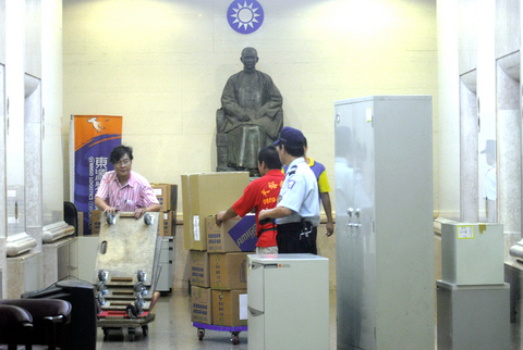 The Chinese Nationalist Party (KMT) began packing up its staff and documents yesterday -- including a 3m-high statue of Sun Yat-sen in the lobby -- in preparation for its downsizing move to Bade Road.
