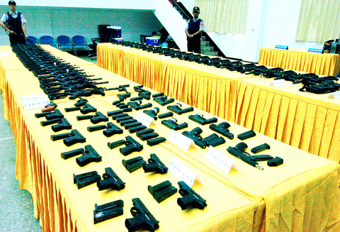 "This is the largest number of illegal weapons we have seized in the past decade," said Pingtung Prosecutor Wang Kwang-chieh (王光傑), who led the raid on a site in Checheng, Pingtung County, at around 1am yesterday.