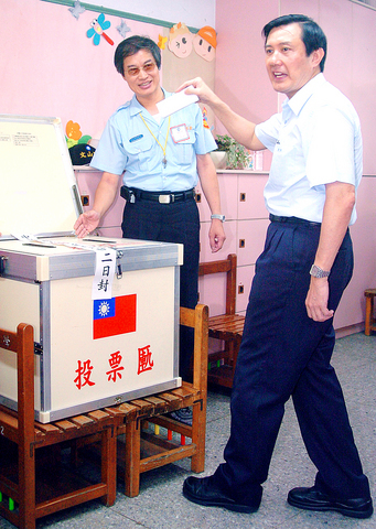 Three female hopefuls, including KMT City Councilor Li Keng Kui-fang (厲耿桂芳), Wang Shin-yi (王欣儀) and Lin Yi-hua (林奕華), tried to boost their support at the last moment by following Ma when he cast his vote in the Wenshan District yesterday morning -- a move that prompted the chairman to demand that they "not use me as a living ad."