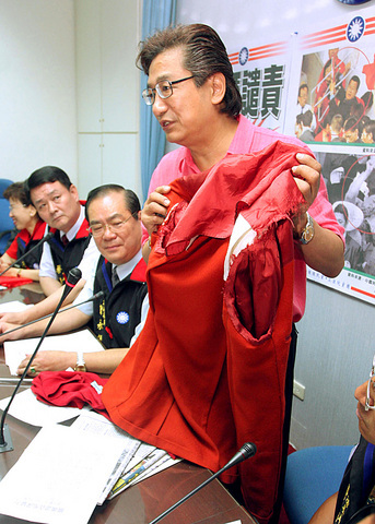 KMT Legislator Chu Fong-chi (朱鳳芝) said blue-camp legislators had chanted slogans during Chen's speech because a white cloth barrier erected to separate their seats from the president's grandstand had blocked Chen's view of the lawmakers.