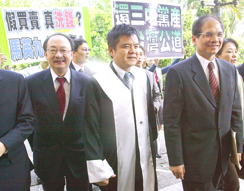 The four then proceeded to the Taiwan High Court Prosecutors' Office's Black Gold Investigation Center to file a lawsuit against Ma, KMT Administration and Management Committee Director-General Chang Che-shen (張哲琛), China Times Group chairman Albert Yu (余建新) and Central Motion Picture Co chairman Alex Tsai (蔡正元), accusing them of embezzlement.