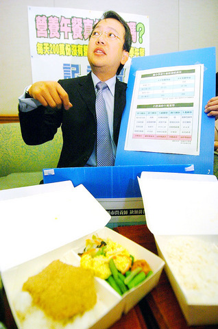 "Fifty-four percent of schools do not have any nutritionist in service," Chinese Nationalist Party (KMT) Legislator Justin Chou (