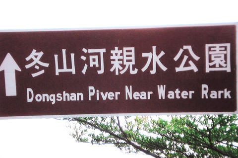 In addition to the official version, "Dongshan River Park," a couple of signs say "piver" and "rark" instead of "river" and "park," and then there are also a couple of versions simply romanizing the Chinese name for the park in different ways.
