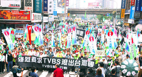 The demonstrators, mobilized by several civic groups, expressed their anger towards TVBS by asking the National Communications Commission (NCC) to shut down the TV station as they marched from the Control Yuan to the TVBS headquarters on Bade Road.