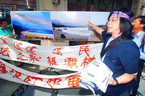 Taiwan Environmental Protection Union secretary-general Ho Tsung-hsun (何宗勳) told a press conference that the Miramar Group did not conduct an environmental review of Taitung's Shanyuan Beach (杉原海岸) for more than a year after it had started construction of the holiday resort.