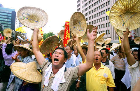 Thousands of pig farmers staged a protest outside the legislature yesterday, calling on the government to impose a ban on imports of US pork, some of which has been found to contain traces of the veterinary drug ractopamine.
