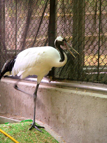 The red-crowned crane, dubbed "Dan Dan" (丹丹), was injured at Hsinchu Air Force Base in September 2004 and taken to the zoo for treatment.