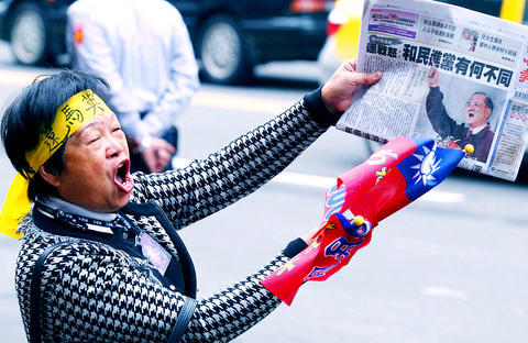 The move triggered criticisms from former KMT chairman Lien Chan (連戰), People First Party Chairman James Soong (宋楚瑜) and deep-blue members, urging Ma and the KMT not to abandon the party's beliefs for election purposes.