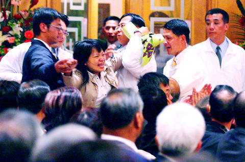Shouting "We cannot afford to live, prostitutes need to make a living," a middle-aged woman sprinted out from the audience holding a banner after Chen had finished speaking at the 30th Wu San-lien Awards ceremony at the Ambassador Hotel.