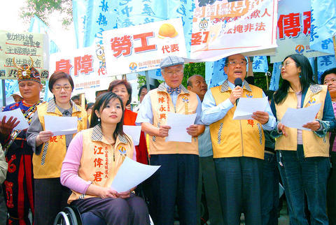 Other candidates include Jackie Chiang (江偉君), representing the physically challenged, Chang Chin-sheng (張金生), representing Aborigines, and former TSU legislator Chien Lin Whei-jun (錢林慧君).