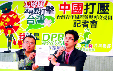 Chinese pressure prevented a Taiwanese group from participating in an international event in Bosnia and Herzegovina this week, the Taiwan Young Democratic Union (TYDU) said yesterday.