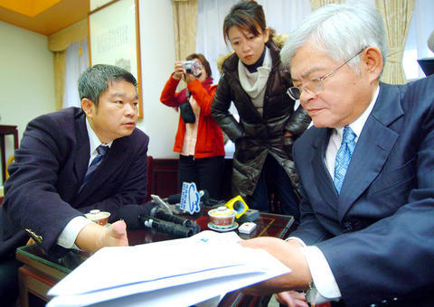 Tsai visited the Ministry of Justice yesterday and presented his allegations to Deputy Minister of Justice Lee Chin-yung (