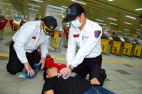 The Fire Department’s Emergency Medical Services Chief Chang Kuan-wu (張冠吾) said that to start off they would assist the TRTC in obtaining CPR certification for staff in Banciao and 20 other MRT stations in Taipei County.