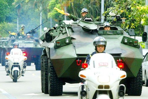 Chen was later transported by armored trucks to a command center in Taoyuan, where he held a video conference with Lu in response to the simulated crisis. This year’s scenario takes place in 2020, with the People’s Liberation Army deploying an aircraft carrier and launching a full-scale attack on the east coast.