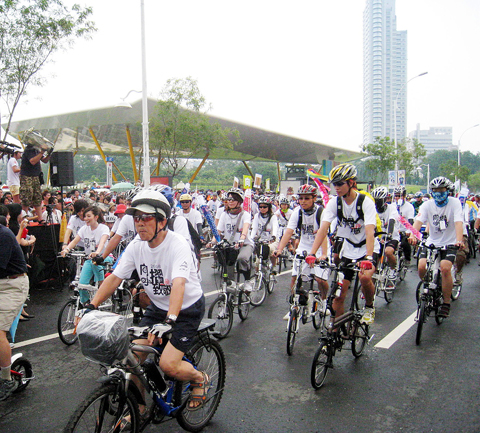 The growing popularity of recreational cycling can be seen in the many bicycle tour events in the past few months — such as Kaohsiung’s folding bike event in May — which now attract hundreds or even thousands of people. A survey released by the Taipei City Government earlier this month showed that the number of city residents who ride bikes increased to 10.5 percent of the population last month, up from 6 percent in May. The city expects that if fuel prices increase another 30 percent, ridership will further rise to 16.5 percent.