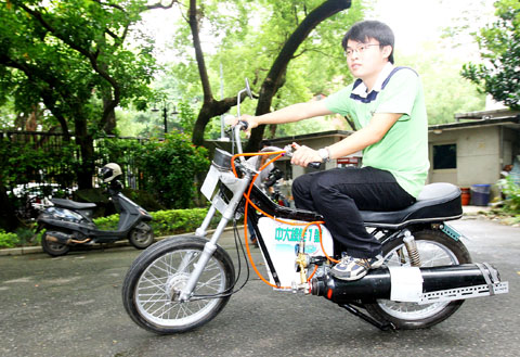 A National Central University professor and student have succeeded in creating a motorcycle that runs on air.