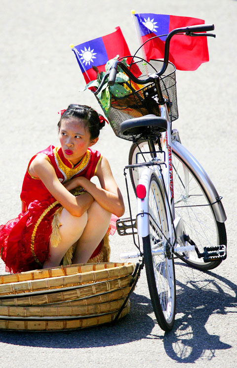 Before President Ma Ying-jeou (馬英九) addressed the ceremony, 62-year-old actor Johnny Lin (林宗仁), whose performance in the box-office hit Cape No. 7 (海角七號) as “Uncle Mao” made him a star, won a large round of applause from the audience as he played the moon guitar, a four-stringed musical instrument, and lightened the mood by swapping jokes with the other performers.