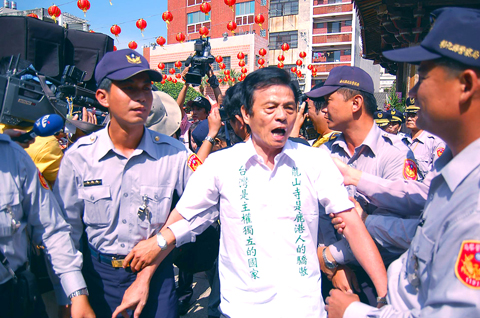 A minor scuffle broke out when protesters, led by a Democratic Progressive Party (DPP) councilor, tried to confront Ma inside the temple. Police apprehended several protesters and dragged them out of the temple.