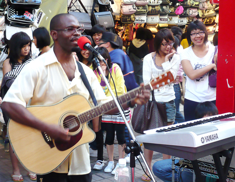 Forty-year-old singer and songwriter Kent John from the US, on the other hand, performs mostly in Ximending (西門町).