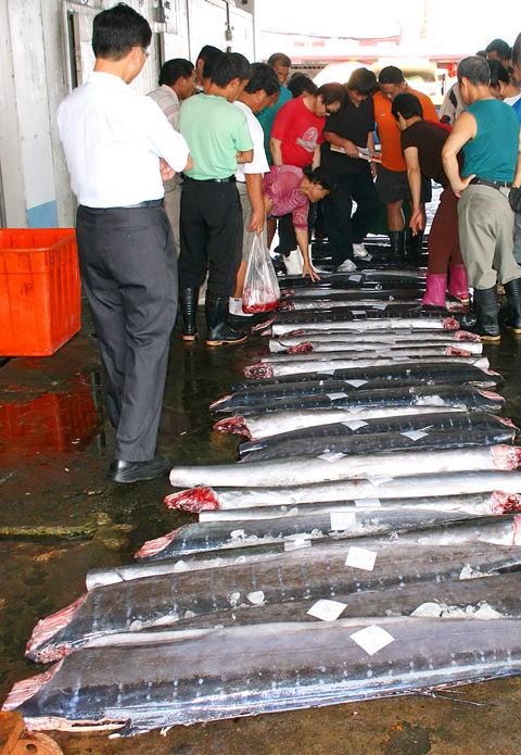 Taiwanese fishermen are normally able to catch up to 100 marlin per day for sale at the county's Singang Harbor (新港) and fish market at this time of year, but this year, fewer than 50 marlin per day are available, local fishermen said.