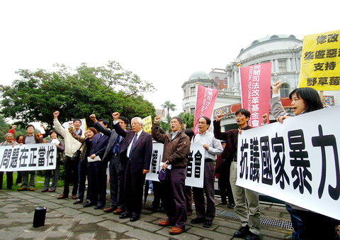 “We brought proof of the NPA and the NSB’s wrongdoing, including videos recorded by the media and individuals on the scene, pictures, injury reports and police reports,” said Chiu Hei-yuan (瞿海源), a sociology research fellow at Academia Sinica.