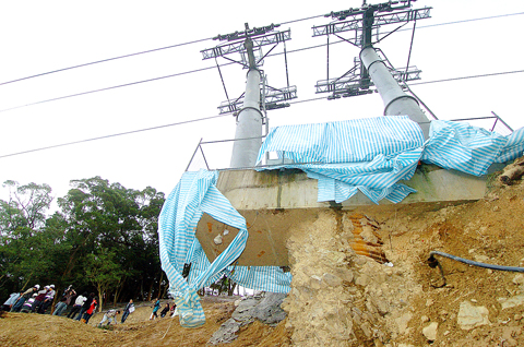 Days before the final evaluation report on the safety of the gondola is expected to be delivered, Shannon Lee (李咸亨), a spokesman for the civil engineering groups invited by the Taipei City Government to conduct the report, said erosion under the pillar — caused by mudslides during a typhoon in September — had reduced the system’s resistance to earthquakes by about 8 percent.