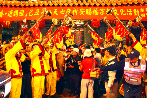 The rivalry was aggravated 20 years ago when the famous Chenlan Temple in Tachia Township (大甲), Taichung County, stopped its annual pilgrimage to Chaotien Temple after welcoming a new Matsu statue from Meizhou in China’s Fujian Province. It now takes the statue on a visit to Fongtian Temple every April.