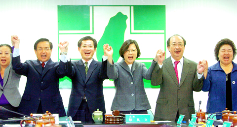The party, which has been damaged by the allegations and court cases involving former president Chen Shui-bian (陳水扁) — who left office last May after eight years as president and then was charged with embezzlement, taking bribes and money laundering, influence peddling and blackmail — failed badly in the legislative elections in January last year and the presidential election last March.