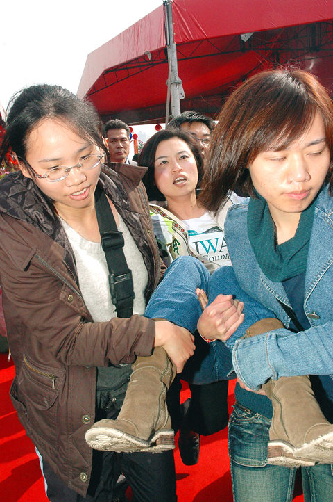 A police station in Sinjhuang (新莊) confirmed that Chang was planning to run for a seat in the Taipei County Council at the end of this year. Both Taipei County Commissioner Chou Hsi-wei (周錫瑋) and Chinese Nationalist Party (KMT) Legislator Lee Hung-chun (李鴻鈞) condemned Chang’s protest, saying that it was intended to get media exposure. After the incident, Liu continued his speech, unperturbed by the outburst.