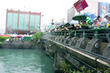 The march concluded on a bridge near the mouth of Tianliao River at Keelung Harbor, where marchers threw their flowers into the river to remember those who died.
