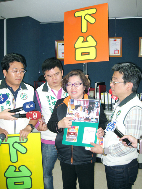 The councilors later led a group of supporters to visit department commissioner of the department Huang Lu Ching-ru (黃呂錦茹) in her office, urging her to take responsibility and step down.