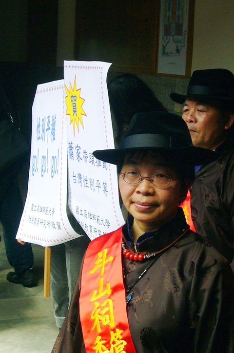 Lee Yuan-chen (李元貞), a cofounder of the Awakening Foundation, said having a woman serve as chief worshipper was a symbolic step.