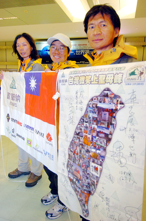 Chiang Hsiu-chen (江秀真) and her fellow mountaineers received a hero’s welcome at Taiwan Taoyuan International Airport. Their success made Chiang the first Taiwanese woman to conquer the highest peaks on seven continents. It also marked the first time in 13 years that Taiwanese alpinists made it to the top of the 8,848m Mt Everest, said the Atunas Group, which organized the latest expedition.