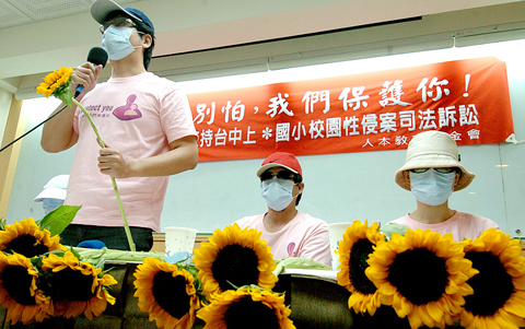 However, rather than report the alleged sexual abuse to government agencies within 24 hours for investigation — as required by law — the principal, Hu Shu-chuan (胡淑娟), asked Hsieh to take a long leave and helped him transfer to a nearby school, she said.