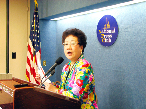 A short biography handed out by her aides read: “In a 1979 rally commemorating International Human Rights Day, she gave a 20-minute speech urging the then-Chinese Nationalist government to embrace democracy and improve human rights. Her speech landed her a 12-year sentence in jail. She was released in 1985 because of intense international pressure.”
