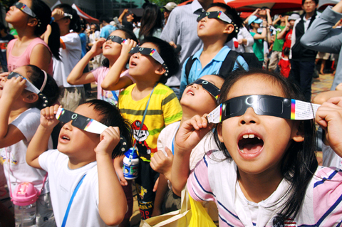 “I came with my mother because the next time we will be able to see a ... solar eclipse in Taiwan will be in 2070, when I am 68 years old,” first-grader Jimmy Chang (張力偉) said.