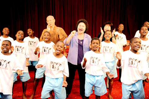 More than 20 orphans from Africa sang Taiwanese folk songs and performed Chinese Shaolin kungfu routines at Kaohsiung City Hall yesterday, captivating an audience that included Mayor Chen Chu (陳菊).