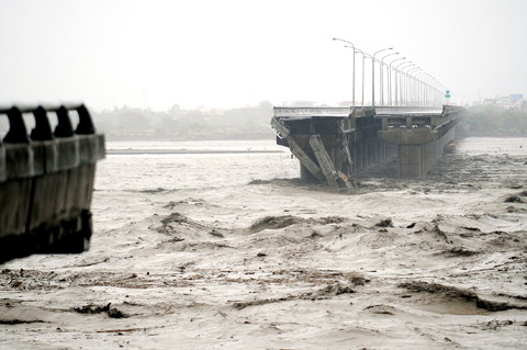 Two recent high-profile bridge collapses — that of the 22-year-old Gaoping Bridge (高屏大橋) in Kaohsiung in 2000 and the 18-year-old Houfeng Bridge (后豐大橋) in Taichung last year — were both caused by bridge piers giving out after being battered by flash floods.