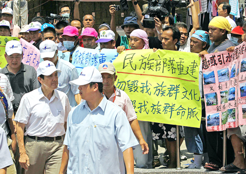 Holding banners that read “Water diversion project ruined our homes and killed our people” and “Don’t let the tribal reconstruction project ruin our tribal lifeblood,” typhoon victims chanted “Aborigines want to enter the reconstruction committee.”