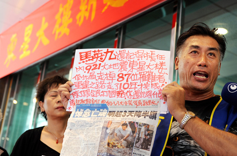 Chen Chien-hua (陳建華), a member of Tunghsing Building Self-help Association, however, criticized Ma as indifferent to the residents’ pain and incapable of handling the aftermath of the building’s collapse.