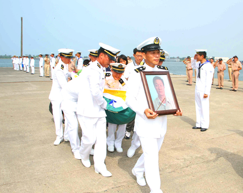 “Military authorities deeply regret the captain’s tragic death,” Navy Commanding General Admiral Kao Kuang-chi (高廣圻) said after presiding over a memorial service in which Chen was accorded full military honors.