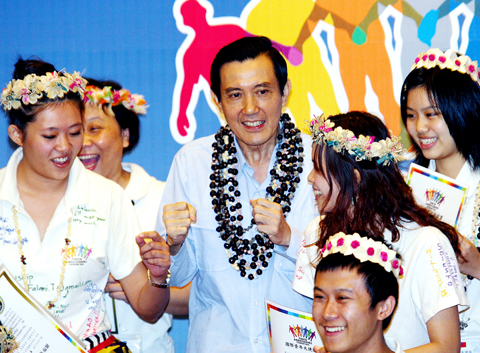 Ma, who ignored the hecklers, continued his speech, as city government officials and organizers tried to contain the noise, while Taichung Mayor Jason Hu (胡志強) and Deputy Mayor Hsiao Chia-chi (蕭家旗) looked embarrassed.