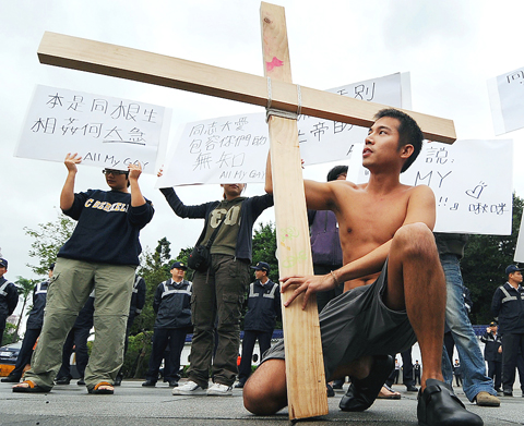 “We don't think that the Bible prohibits homosexuality, it's just a matter of how you interpret it,” said Wang Hao-chung (王灝中), one of the activists.